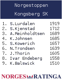 | 7. | Jan Einar Thorin (1997) | Kongsberg SK | 1605 | 0 partier | |||
